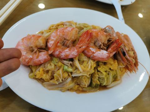 岛城著名的海鲜店,就在八大关一个不小的院子里。大虾白菜号称经典中的经典,白菜融入了很多虾油,色泽红润,大虾鲜甜、有弹性;辣炒蛤蜊也是一如既往的鲜。