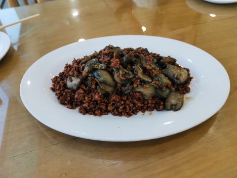 Wan Xin Restaurant来青岛的第一餐,选择了离入住酒店很近的万鑫餐厅。没什么装潢可言,窗明几净,朴实无华,地板亮得能照出人影,冷气足得能让人起鸡皮疙瘩。服务也很有老餐馆的范儿,简练、到位但不多说废话,不会像某些店刻意嘘寒问暖。 人少不好点菜,便叫了两道招牌菜——肉沫海参、大虾白菜。肉沫海参最吸引人的不是海参,而是肉沫。肉质很好,基本没有肥筋,酱香十分浓郁,再加上爽口弹牙略带嚼劲的鲜海参,非常下饭,两个孩子每人都吃了满满一碗饭。大虾白菜也不遑多让,虾头里的虾油被充分逼出,白菜取的较嫩的部位,烧得也透,足足地浸润了虾油,鲜得简单粗暴,舌头上的味蕾仿佛缴械投降,准备迎接鲜味的冲击。大虾个头不小,非常新鲜,肉质紧实有弹性,虾头里都有不少肉。清香的白菜裹上浓香的虾汤,又是一道下饭利器。 两道菜,再加冒尖的两碗饭,三人吃得饱饱,开心地下海去了。
