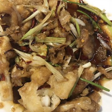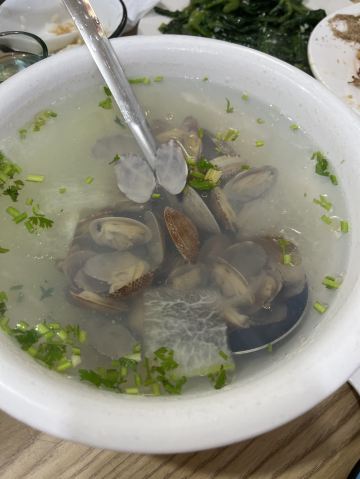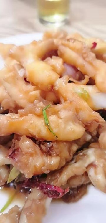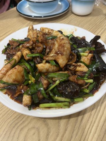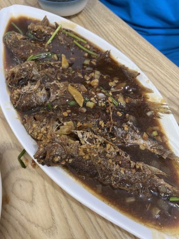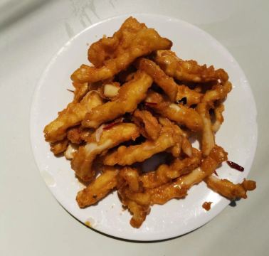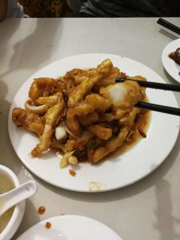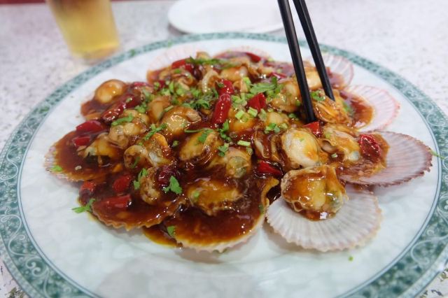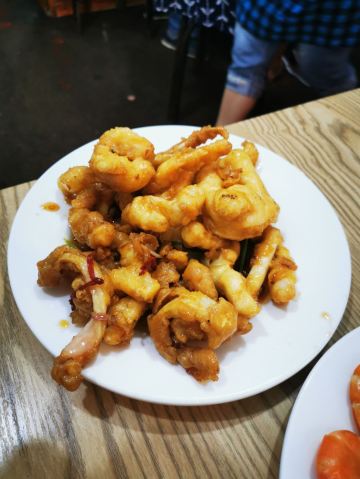 芋泥朵朵青岛老字号苍蝇馆子,典型的市井味道。 食客多为本地居民,像我们一样,慕名而来的游客也不在少数,络绎不绝,可见非同。 店面很小、很简朴,其貌不扬,深居小巷。 可味道却是口口相传,不到饭点就已座无虚席。 我们只好露天而坐,大家一起,吃个热闹劲儿。 香辣鱿鱼条:45元 肥美无比的鱿鱼条裹上面糊后经过高温炸制焦脆卷曲,口味甜而微辣,类似于锅包肉,碳水+脂肪一同入口,大写的满足,不愧是当家招牌菜品啊。 五花肉炒比管:45元 要说前者是肉食者的心水,那遇到下面这货也只能是小巫见大巫了吧,鱼畜共盘,韭菜和木耳打底,偏酱香口,很实惠。 蚝油扇贝:38元 扇贝肉质肥嫩新鲜,店家处理干净,肉壳分离,吃着便利,香菜蒜汁蚝油调味儿,丝毫不抢食材本身的风头,看那黄,就问你,馋不馋? 蛤蜊小白菜:22元 价如其名,可真是白菜价啊,一盘这么多的蛤蜊肉和炒蛋,太值了,味道很清淡,简单的调味儿,看着就很健康有木有啊。 崂山可乐:5元 来青岛怎么能不试下崂山可乐呢,有股中草药的味道,说它是可乐却更像是酸梅汤呢,味微苦,冰镇的既解渴还解暑,比啥大牌可乐好喝多了呢。 这里承载着青岛人的情怀,这里有青岛大嫚最不可割舍的家的味道,我非青岛人,但我食青岛味儿。 胶东人口味偏淡喜甜,和广东人很像,合我口。