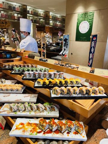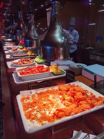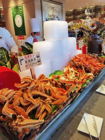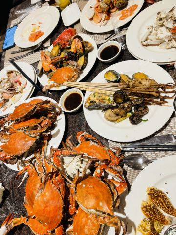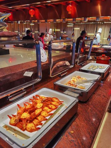 青青岛-海景花园是青岛自助餐界的天花板,没有之一。并不是它有多么的豪华,而且服务的一种认可。暑期基本外地游客为主,淡季当地人拖家带口的来就餐,节假日一般很难约。这里对小朋友很友好,130以下免费,而不是半价,继而成人全票的价格一般都是300➕,当时有活动和生日的时候可以囤一些优惠票。这里对于就餐的小朋友,开放游乐设施,在负一层有电影院,游乐场等,愿意的话可以玩一天。餐饮很全,海陆空都有,海货都很新鲜,虽然没有各吃,但是不限量,当然个别食材控量出餐属于正常,只要你慢慢等,后面你可以随意吃,不可能吃不到。酒水也很全,啤酒里面有青岛白啤,这个建议大家尝尝。现在节假日餐厅里面加了很多临时桌子来应对预约过多的情况,如果就餐区域内增加个洗手的地方就好了。