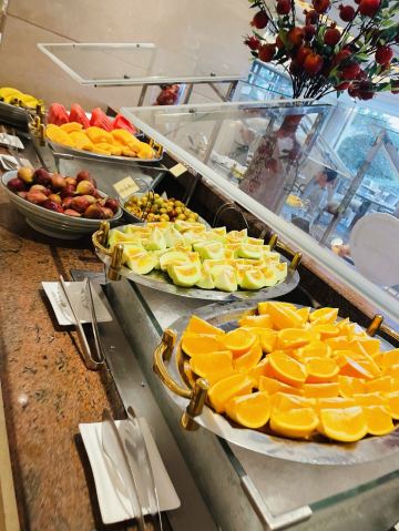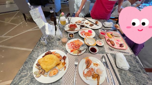餐厅环境典雅,与大海仅一路之隔。各类美食应有尽有,中式、西式、韩式等各国风味一应俱全,食材新鲜,菜品口味也都很不错。这家餐厅的服务非常到位,如果有菜品空了很快就会换盘满上,补充很及时。海景花园大酒店就在大海边,用完餐去海边散散步也是不错的选择。