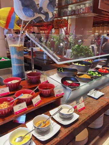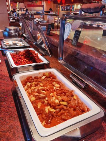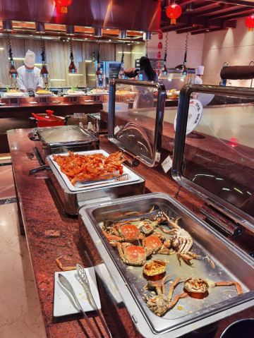 SEE VIEW GARDEN HOTEL·Western Buffet今天打卡上海景花园大酒店自助餐,体验感拉满!菜品丰富到让人挑花眼,海鲜区的帝王蟹腿肉质饱满,三文鱼厚切新鲜肥美;热菜区鲜香浓郁,本帮红烧肉甜而不腻;甜品台更是惊喜,提拉米苏口感绵密,马卡龙颜值超高。服务员添盘、换骨碟特别及时,态度热情周到。餐厅环境优雅大气,宽敞明亮,座位间距舒适。现煎牛排、小火锅还能按喜好定制,太贴心了!性价比超高,