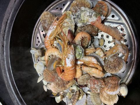 大锅蒸鲜是岛城最近几年特别流行的菜系,锅底选淡水鱼,上面蒸海鲜,那感觉那味道,无敌了~