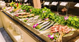- 吃海鲜和观景的好去处,自助的吃法,菜品卖相、刀工、口味都是粤式做法;点心南北合璧,味道不错。三面落地玻璃外便是热闹非常的海滩,阳光好的时候观海景、听海浪,感受岂是一个爽字可形容。