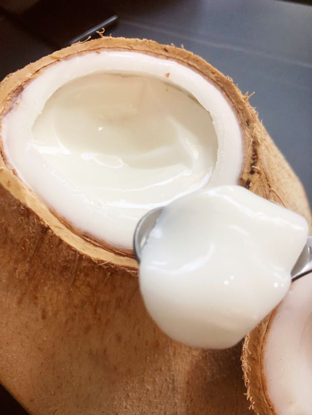 这里的甜品好好吃 尤其是这个芒果沙冰 样子就很诱人 还有椰子冻 冻冻分两层 上面是白色的 下面是透明的 吃完还可以刮刮椰子肉吃 很好吃 大椰子冻35元