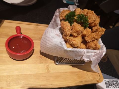柠檬茶其实还算是可以的,分量算是比较的足够,但是冰就有一点点多。 小吃就点了这边的盐酥鸡,份量还算是可以的,上来的时候也算是吓了一跳,原本以为只是很小的一点,没想到分量还是挺足够的,味道也还不错。