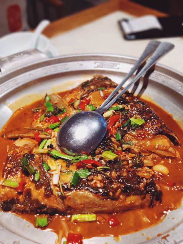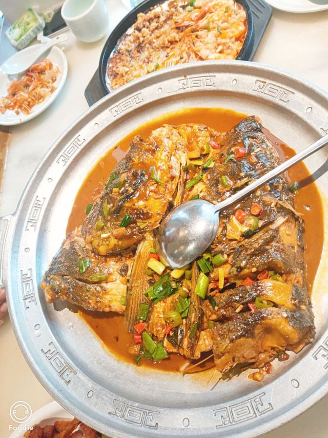 人生若只如初见AA走走tingting的探店笔记 大鱼头,我最喜欢吃![调皮] 赣湘楼领袖天地这家店我印象中开了好久啦吧! 感觉第一次来吃都是好多好多年前啦。 [薄荷]环境:装修是有点江南风情的,挺不错,座位宽敞舒适,而且靠窗位置很多。 他们家主要就是吃香喝辣的,招牌菜也挺多 |红烧野生大鱼头^鱼头真的好大一个,红烧的做法,吃起来特别赞,鱼肉很嫩,香辣开胃,而且连酱汁都很下饭。 |黄金烤排^这道菜很好吃,小侄子一个人吃了七八块,肉腌制的很入味,外酥里嫩搭配脆脆的黄瓜好吃。 |铁板蒜香虾^分量不算很大,但是蒜蓉给的很足,虾很新鲜。舀一勺蒜蓉加点红烧鱼头的酱汁拌饭吃,超级赞。 [服务铃]服务:服务态度非常好,热情周到,感觉很棒。反正属于下次还会想再光临的店。
