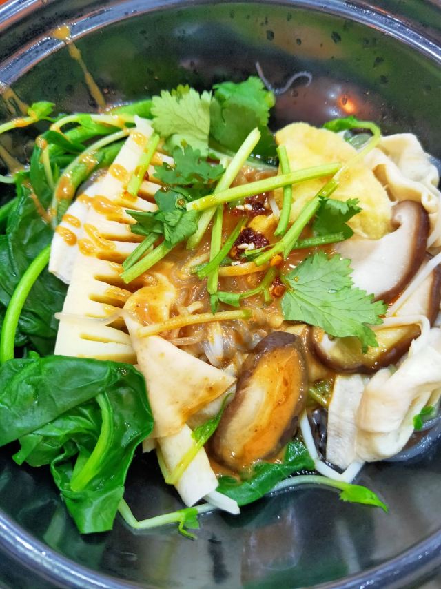 【环境】很大,很宽敞,装修风格也是简约舒适的那种,算是现在最网红的素食餐厅了。 【口味】吃“第一次看到还有烧烤 和麻辣烫的素食餐厅,甜品种类也多,都很好吃,凉菜热菜都不错。 【服务】态度很好。 人均39