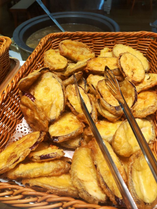 人均:33元 泉州信佛,每适初一,十五,素食斋令泉州人向往,品斋佛心 善和缘素食馆 地址:百源路涂门百汇斜对面拐角处. 品尝于二楼,一楼买单取碗处,由于周末今天人好多噢,感觉都有点菜市场的节奏感了,由于人多,很多餐桌都是临时搭建,拥挤且凌乱感.人过多,拍照等麻烦,所拍有点杂乱感.素食这人均略感小资, 煎,炸,现煮,饮品,冰淇淋,烧烤,小吃很多品种选择. 取了份蔬菜,秋葵,茄子,丝瓜,这盘下肚啊就略感油腻感,无食欲再下一盘.蔬菜口感鲜脆,滑嫩,咸度适中, 食另一盘炸食,榴莲酥,芋头,糯米饭,糍粑等,好撑啊,就干这二盘,芋头酥脆松软,糯米饭软糯可口,榴莲肉质感榴莲香略所不及.
