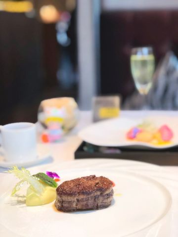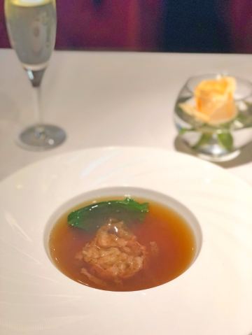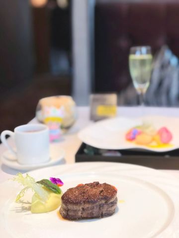 只款待心中最重要的人 这次,款待我自己 王品牛排 📍泉州浦西万达广场1号门3楼 🈺10:30-14:00 17:00-22:00 🍃环境:低调奢华欧洲风,灯光柔和,优雅大气。 🍃服务:提前一天预约的时间,还没到门口,迎宾看到立马向我快步而来[愉快],入座后会有专员服务,上餐都会介绍菜品,中途会主动换骨碟和询问续甜酒。 🍃餐前酒:蜜桃甜酒 无酒精甜酒,口感清爽,可以续,餐前喝很开胃。 🍃餐前面包 上桌还是热乎的,一款蒜蓉,一款原味,有2种酱可以搭配,比较喜欢蒜香凯撒酱,有蒜的微颗粒,搭配酥软的面包,非常香。 🍃前菜 💫法式香煎鹅肝佐无花果酱 鹅肝饱满多汁,犹如一层薄薄的外皮包裹着汁水,搭配凤梨的酸甜,层次丰富,佐无花果酱去腥。 💫鱼籽木瓜牛肉塔塔 鱼籽、木瓜碎和牛肉粒一层一层组成的塔塔。 颗粒口感的鱼籽,微甜的木瓜,真材实料的牛肉粒,每样食材的口感都很明显,搭配起来别有一番风味。 🍃汤 💫卡布奇诺菌菇浓汤 卡布奇诺和菌菇浓汤的融合,搅拌均匀再喝,很明显能喝到2种结合的味道,底下的菌菇也很丰富,特别是有我喜欢的草菇,口感厚实又鲜美。 💫牛小排清汤 造型独特,用牛小排肉包裹成圆球形状,再加高汤冲泡,剥开后犹如天女散花般露出里面的竹荪。浓郁但清爽的高汤搭配竹荪的爽脆口感,再加上牛排肉的嫩,绝! 🍃酸梅汁 餐中间上的一小杯酸梅汁,一入口高浓缩的酸,微甜回甘解腻。 🍃主餐 💫台塑牛排 照片具有欺骗性,牛排很大一份,但怎么拍都很迷你[捂脸],350g带骨牛排,做法跟闽南炖牛排的做法很像,用好多种中药材炖煮1个半钟头而成。牛肉旁边有带筋,牛肉柔软,筋有弹性很有嚼劲。搭配蜜汁地瓜和红血梨,红血梨口感多汁脆甜,地瓜会有点噎,这一份足够满足2个女生的量。 🥩安格斯谷饲西冷牛排佐白兰地蘑菇酱 很有嚼劲的一款牛排,牛肉紧实非常有弹性,这款比较吃原味,可以搭配海盐。 🍃甜点 💫提拉米苏 很吸引人的外观设计,手动敲开很有仪式感,敲开的糖内壁挂着一层咖啡糖浆,微苦;提拉米苏很迷你,但浓缩的都是精华,用的蛋糕胚很柔、绵密,香甜滑但又带点微苦。 💫香芋咸蛋黄芝士蛋糕 咸蛋黄芝士实力抢镜,搭配的冰淇淋抹在上面好吃。 🍃饮料 💫香颂玫瑰露 犹如少女仙气飘飘般款款而来,柠檬味中淡淡的玫瑰香。