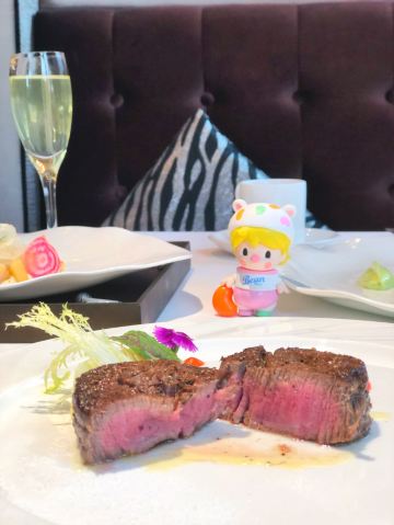 YoYo_2W9Z1G3V只款待心中最重要的人 这次,款待我自己 王品牛排 📍泉州浦西万达广场1号门3楼 🈺10:30-14:00 17:00-22:00 🍃环境:低调奢华欧洲风,灯光柔和,优雅大气。 🍃服务:提前一天预约的时间,还没到门口,迎宾看到立马向我快步而来[愉快],入座后会有专员服务,上餐都会介绍菜品,中途会主动换骨碟和询问续甜酒。 🍃餐前酒:蜜桃甜酒 无酒精甜酒,口感清爽,可以续,餐前喝很开胃。 🍃餐前面包 上桌还是热乎的,一款蒜蓉,一款原味,有2种酱可以搭配,比较喜欢蒜香凯撒酱,有蒜的微颗粒,搭配酥软的面包,非常香。 🍃前菜 💫法式香煎鹅肝佐无花果酱 鹅肝饱满多汁,犹如一层薄薄的外皮包裹着汁水,搭配凤梨的酸甜,层次丰富,佐无花果酱去腥。 💫鱼籽木瓜牛肉塔塔 鱼籽、木瓜碎和牛肉粒一层一层组成的塔塔。 颗粒口感的鱼籽,微甜的木瓜,真材实料的牛肉粒,每样食材的口感都很明显,搭配起来别有一番风味。 🍃汤 💫卡布奇诺菌菇浓汤 卡布奇诺和菌菇浓汤的融合,搅拌均匀再喝,很明显能喝到2种结合的味道,底下的菌菇也很丰富,特别是有我喜欢的草菇,口感厚实又鲜美。 💫牛小排清汤 造型独特,用牛小排肉包裹成圆球形状,再加高汤冲泡,剥开后犹如天女散花般露出里面的竹荪。浓郁但清爽的高汤搭配竹荪的爽脆口感,再加上牛排肉的嫩,绝! 🍃酸梅汁 餐中间上的一小杯酸梅汁,一入口高浓缩的酸,微甜回甘解腻。 🍃主餐 💫台塑牛排 照片具有欺骗性,牛排很大一份,但怎么拍都很迷你[捂脸],350g带骨牛排,做法跟闽南炖牛排的做法很像,用好多种中药材炖煮1个半钟头而成。牛肉旁边有带筋,牛肉柔软,筋有弹性很有嚼劲。搭配蜜汁地瓜和红血梨,红血梨口感多汁脆甜,地瓜会有点噎,这一份足够满足2个女生的量。 🥩安格斯谷饲西冷牛排佐白兰地蘑菇酱 很有嚼劲的一款牛排,牛肉紧实非常有弹性,这款比较吃原味,可以搭配海盐。 🍃甜点 💫提拉米苏 很吸引人的外观设计,手动敲开很有仪式感,敲开的糖内壁挂着一层咖啡糖浆,微苦;提拉米苏很迷你,但浓缩的都是精华,用的蛋糕胚很柔、绵密,香甜滑但又带点微苦。 💫香芋咸蛋黄芝士蛋糕 咸蛋黄芝士实力抢镜,搭配的冰淇淋抹在上面好吃。 🍃饮料 💫香颂玫瑰露 犹如少女仙气飘飘般款款而来,柠檬味中淡淡的玫瑰香。