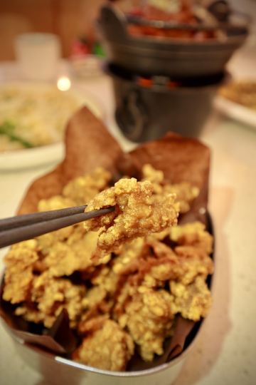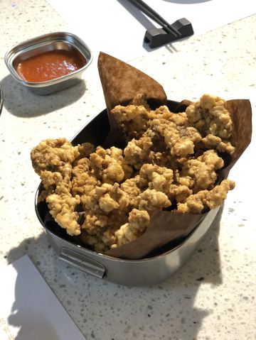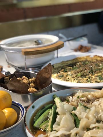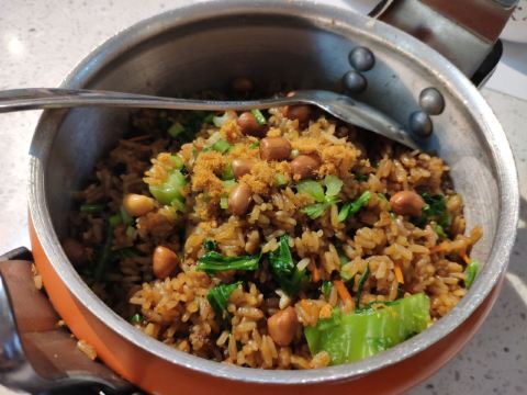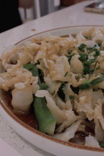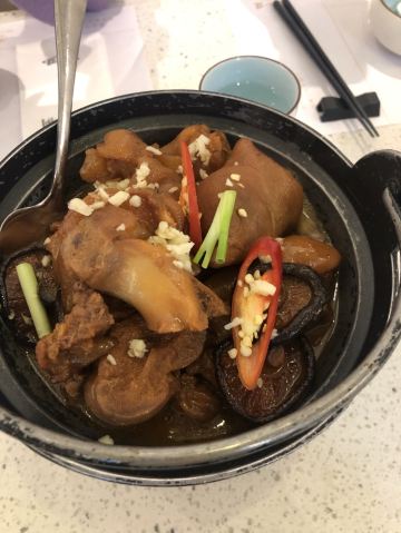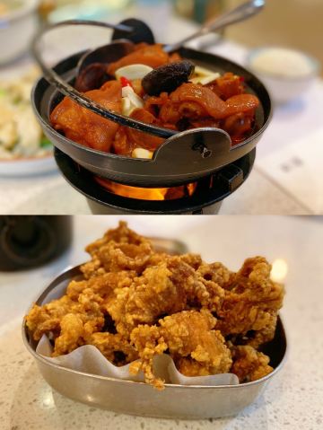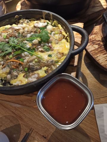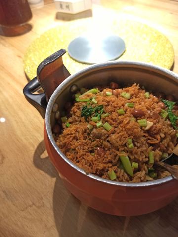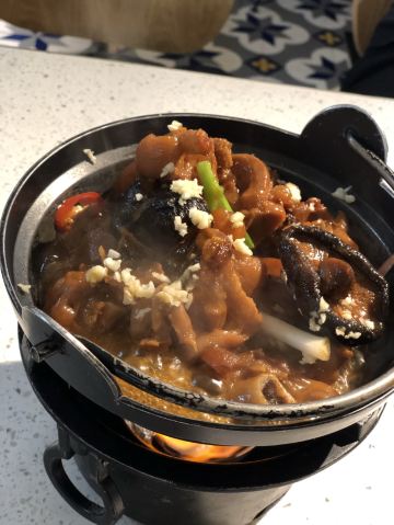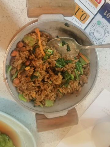 YoYo_3K2F2G9T位置 南益广场五楼 和朋友聊天时,好几人夸这家店好吃,排队也要吃的那种,这次特意过来试试。 他家黄金鱼翅糕让我印象很深刻,口味不输广州吃到的茶楼点心,糕蒸得一根根脉络分明,和鱼翅一样,很Q弹,也不太甜腻。 鼓香蒸鳗鱼我很喜欢这道,感觉特别下饭,肉质鲜嫩,酱香入味,口味很传统,像闽南老派上桌菜的味道。 海蛎煎配泰式甜辣酱,放在烙锅上桌,蛮有意思的,很鲜甜,牡蛎煎得很嫩。比较新派的混搭。 粉丝半边虾我更喜欢粉丝。感觉虾汁都融化在粉丝里,特别鲜美入味。 芥菜饭做得挺好的,水准蛮高的,但觉得可以加点虾米或干贝吊个鲜味会更棒! 点的菜基本没有踩雷,感觉菜品的整体水准比较稳定,闽南口味,基本空盘,吃得身心愉悦,非常值得再来!重要的是这家菜的单价也不太贵,两三人也挺好点菜的。