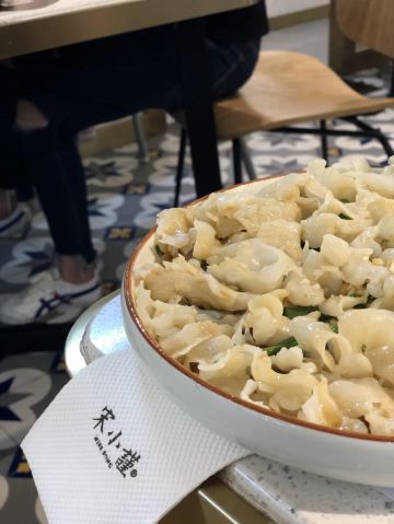 糖一包果一包宋小谨南益店位于南益广场5楼,潮福城的隔壁。 商铺主打闽南菜,兼顾川菜,所以无论是否吃辣,朋友同事皆可在此大快朵颐。 二维码扫码点单,上菜速度快得惊人。还有可爱的机器人帮着送餐,让人目不转睛。 闽南炸醋肉,很常见的闽南小食,越是平凡的食物越考验师傅的手艺。醋肉不油不腻,醋味恰好,香酥外表下略带嚼劲,吃了停不下来。 海蛎紫菜煲,实在的一盘海蛎,个个丰腴,鲜甜到没朋友。 闽南芥菜饭,添加胡萝卜丝,海蛎干,花生等,用料丰富。芥菜饭毫不油腻,份量足够3人食,很不错。 古法蒸青斑,整条鱼蒸制而成,鱼很新鲜,加之鱼肉嫩滑,刺少,意外地好吃哦。 整体挺不错,吃得很是满意。