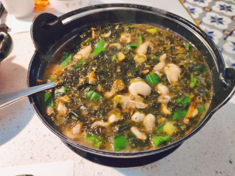 一个字,油;两个字,真油;三个字,还是油。 菜的口味本身是不错的,除了油。服务差口气,服务员只管上菜,不帮你摆放的,菜放在桌边,得自己去归置。快吃完的时候有个女服务员过来,略生硬地问菜怎么样,我跟她说不错,就是有点油,然后她嗯了一下离开了。