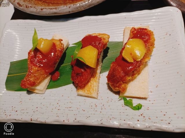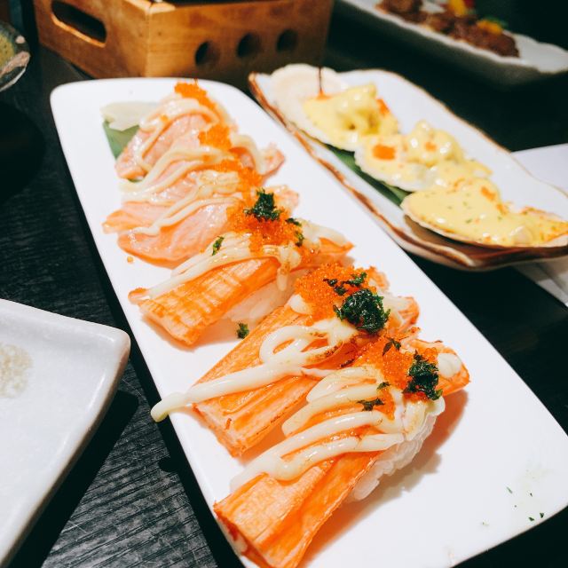 环境优雅,出品精致,晋江日料界里的翘楚。三文鱼焦糖寿司略带甜味,甜而不腻;鲍鱼沙拉是熏鲍片,淡淡的熏味,再搭配上沙拉酱,有一种无法言说的和谐感。