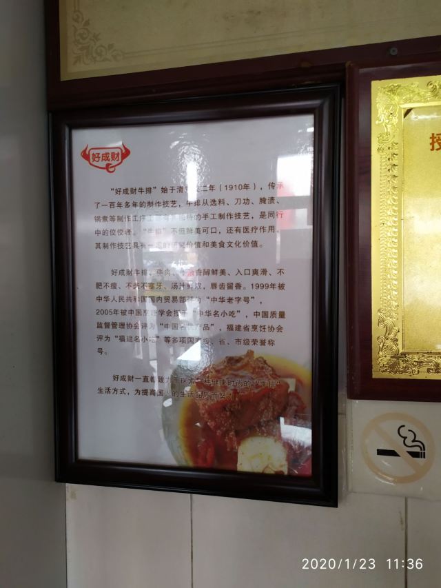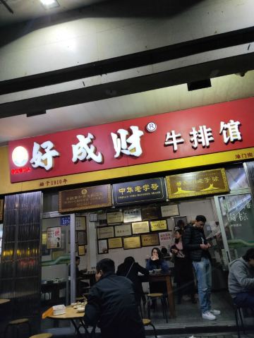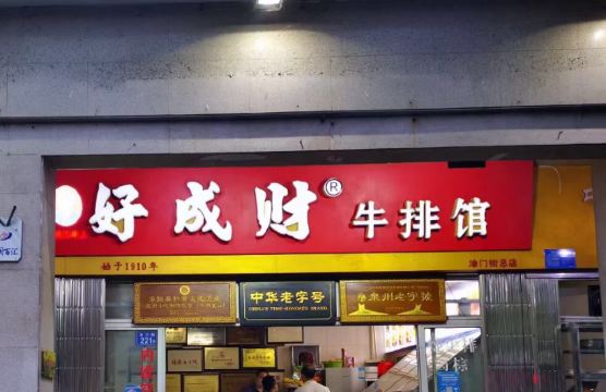 YoYo_3Y2H6S1D在鲤城区涂门街的通淮关岳庙对面一侧,有一家叫好成财牛排馆的百年老字号,以牛排等牛肉小吃著称,一到饭点时分,经常门口排起长龙,店内一座难求。