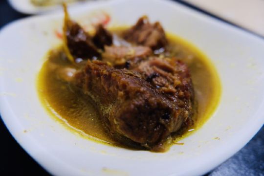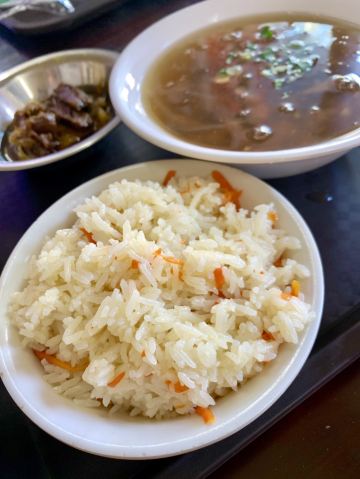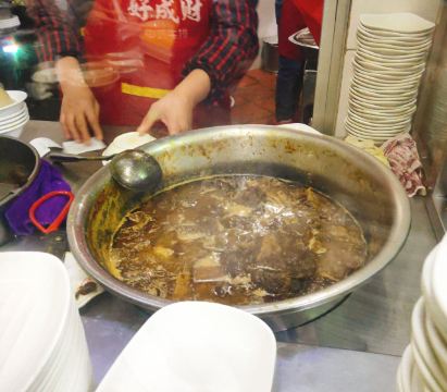 ma****ly这次到泉州旅行,当地特色的牛排馆也是我的打卡点,我挑选了阿秋家和好成财这两家,预备着游览的时候哪家方便去哪家。那天正好游览完承天寺,看了看地图,好成财就在附近,那就他家了。 好成财涂门街店,就在关岳庙的对面,隔着马路看过去好像人不多,但走到店前才看到,原来人都拥在里面呢,排队点单,排队拿食物,然后在店里的各个角落里看到空位马上坐下。 泉州的牛排并不是西式牛排,但它的来源的确和西式牛排有关。早年泉州人出国看到外国人吃的牛排,回国之后,照葫芦画瓢的根据国人的习惯做出了这种牛排,所以泉州牛排的实质其实就是红烧牛肉。 店里的牛排,大多是点好之后搭配一碗米饭,或者点份搭有小菜的套餐。饭有普通的,也有咸饭。咸饭也是他家的特色,要说特别咸也不是,觉得有点菜饭的感觉,倒是牛排的绝对搭配了。 单一份牛排的的单价有些小贵,所以点份套餐感觉划算一点点。 还有就是作为泉州的人气场所,不要太指望店里的员工对你和颜悦色哦。