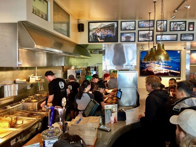 旅の径Furgburger,皇后镇的名店,新西兰的网红,地球上的最佳汉堡。 人气旺。开在皇后镇商业街区北侧修沙特弗街的汉堡店,终日客流不绝,就餐时段需要排队30~50分钟,非就餐时段需要排队10~15分钟。走在街上,看到排长队的店铺~就一定是她了。 品种多。店铺不是很大,但品种丰富,从牛肉、猪肉汉堡,到海鲜、素食汉堡,想到和想不到的~在店里都能尝到。 份量足。汉堡的直径和厚度,都比印象中的传统汉堡,要大许多。一个有500克重,吃一个~管两人饱。 口味佳。汉堡汁多味浓肉嫩,口味老少皆宜,入口喷香,回味无穷。 到了皇后镇,一定要品尝大汉堡。