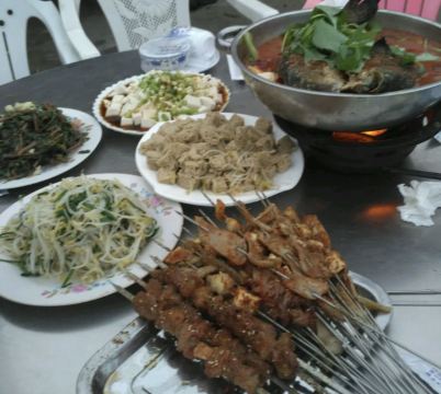 地锅算是这个地方的特色美食之一了,街上能看到很多家吃这个特色的,这家看上去就是典型的农家菜特色,晚上还会有烤串特色供应。