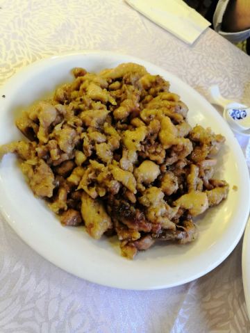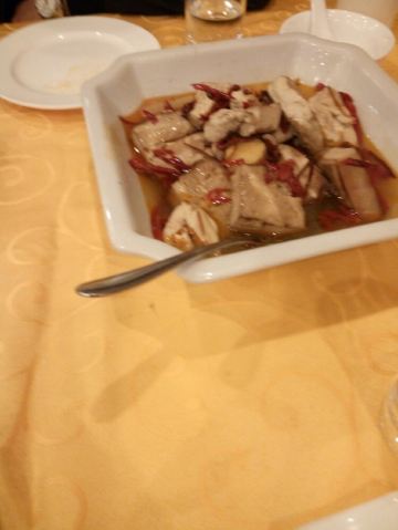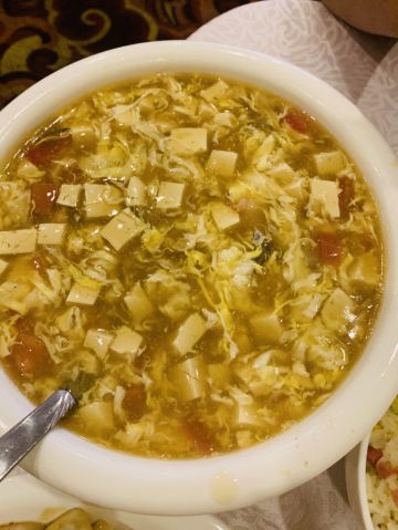 Queli Hotel·Restaurant差点被小蹦蹦骗了,饭店在街里面,拉车的师傅拉到路口就说到了,让我们去路口的一家饭店。路口的那家饭店人很多,还是坚持去的精舍饭店里面。点了葱烧海参,孔门豆腐和疙瘩汤,味道还不错。豆腐带点熏制的味道,海参稍咸,疙瘩汤没有萝卜味,一大盆九块钱并不贵,味道价格中规中矩。