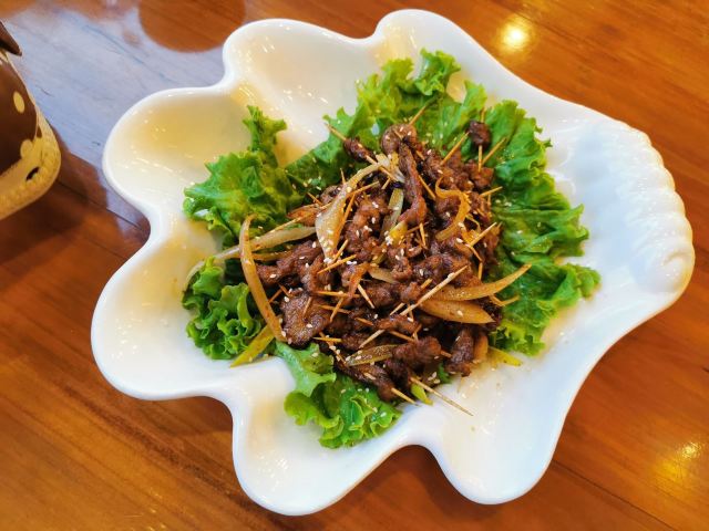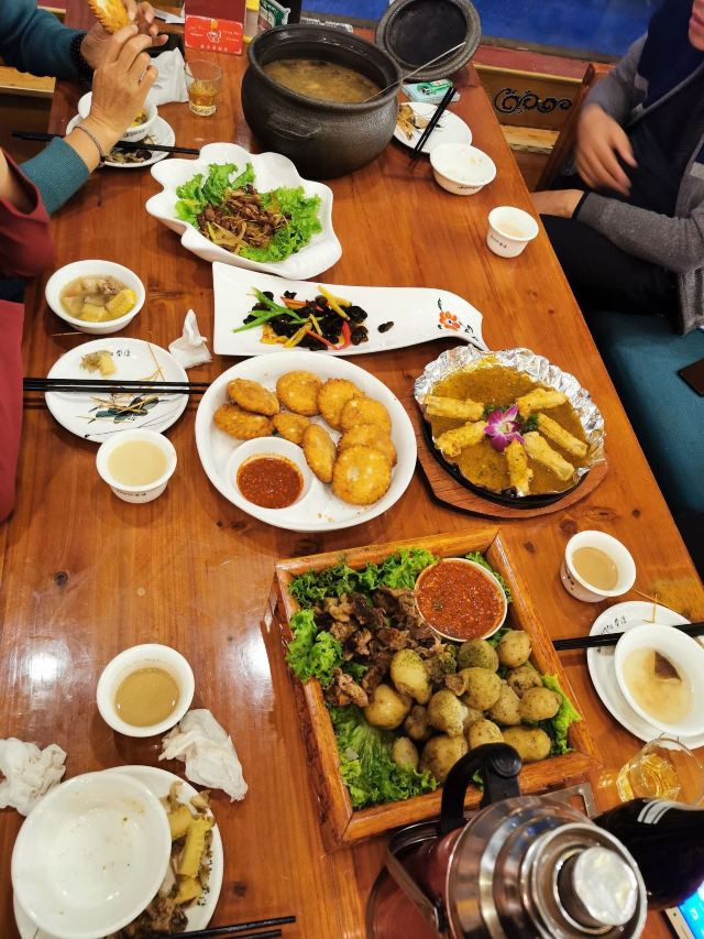 日喀则市内很不错的一家藏餐馆,门脸很大,环境很小资,浓郁的藏民族风情。菜肯定是改良过的,味道都挺不错的,外地人去的蛮多。推荐羊血肠,藏香猪排和烤羊腿。