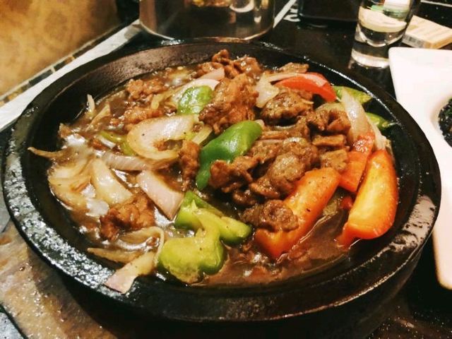 味道都不错,怪不得能开这么久 黑米炒饭」炒饭很好吃啊,里面油条脆脆的,黑黑的饭撒上肉松,看起来很有食欲,超级经典的炒饭。赞 铁板牛肉」汤汁好多啊…不像铁板的做法,肉都很大块。 芋头脆片很好吃,油炸的,吃起来像薯片边聊边吃还不错。