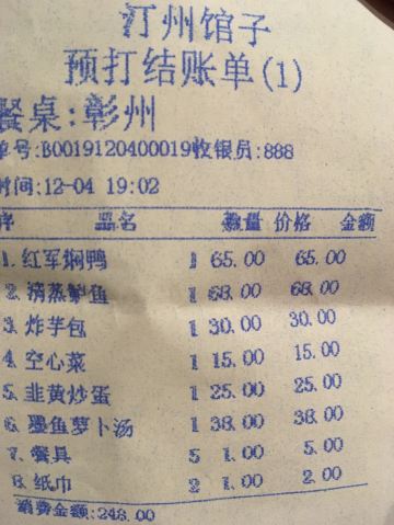 第一次来瑞金,搜到酒店附近的江西特色的汀州馆子。到了店里才发现不是“馆子”是很大的饭店,一楼摆了有二三十张桌子,人少上了二楼的包房!他家的红军焖鸭很酥软、很好吃!炸芋包很有特色,就是蘸水很辣!墨鱼萝卜汤挺好吃的,其他炒空心菜、韭黄炒鸡蛋就一般啦!五个人吃饱饱的…