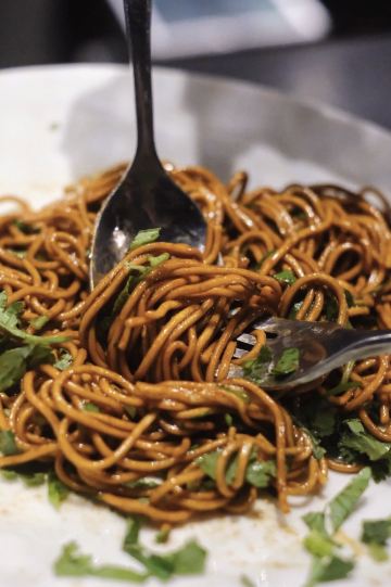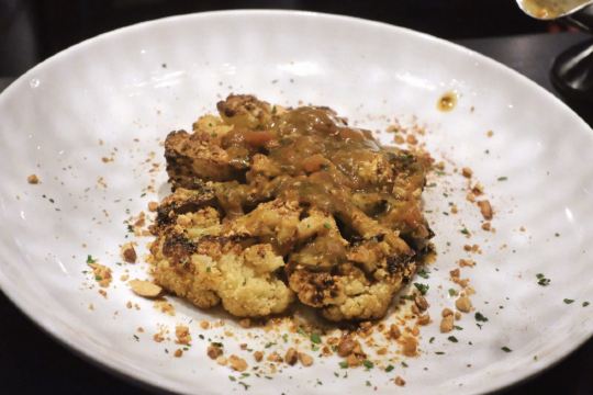 Solo Pasta and Pizza烤花菜排 花菜表面微微焦酥,内里烤得绵软不失脆嫩,妙的是菜香中还带着淡淡奶香,浇汁浓稠更添咸鲜。本花菜黑粉打脸了。 京葱煎带子 带子鲜嫩又大个,但是海鲜汁调味咸了点。 拌海鲜 有牡蛎、虾、鱿鱼、生蚝,都是新鲜饱满的,海鲜本身没有调味,但是搭配的酱汁很好吃,整体鲜美又清爽。 澳洲和牛去骨眼肉 配菜丰富,牛排五分熟切开还是粉嫩的,可惜表面有点焦了。加了煸干的鸡油菌,有点特别~ 葱油拌面 重头戏来啦!! 品一品这碗称霸魔都然而只送不卖的葱油拌面,顺滑筋道,油润鲜香,简单却让人回味。 本就是冲着这碗面来的,结果完全不负期待! 提拉米苏 香甜滑腻,酒味浓郁,但是底部的蛋糕湿润过了头,酒多到可以挤出来。 提拉米苏还是Nene好吃呀~ 葱油拌面是夜宵菜单上的,但是想吃可以跟服务生说,厨房有时间就会做。餐厅生意很好,晚上的位子记得提前预定。