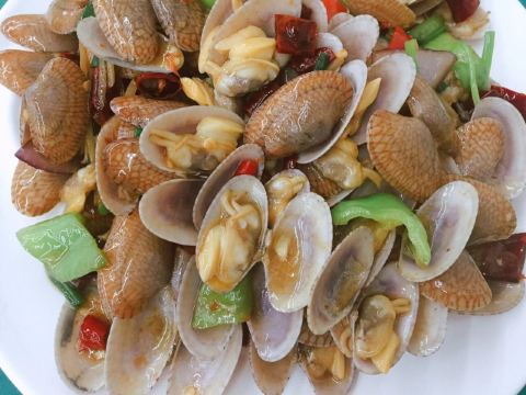 一位40多岁的女子掌店,应该就是店名所谓雪姐了吧!她家海鲜也是店内现称的,价格是烧好后的价格。肯定要比生的贵些。因为都包含了加工费! 点了两只香辣乐和蟹就100多啦,还有一盘辣炒蛏子,一盘白螺。都挺好吃的,香辣蟹味道一绝了,蛏子也是很大只,白螺倒是肉一点,壳子倒是很大只!