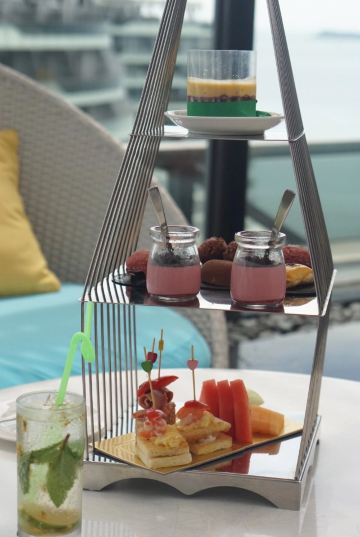 高颜值的天空酒廊,新春下午茶,鸡尾酒,果盘,蓝色玛格丽特,莫吉托,双层下午茶,玛格丽特,果汁,红酒,主打烧烤档半自助,甜点,艾丁格
