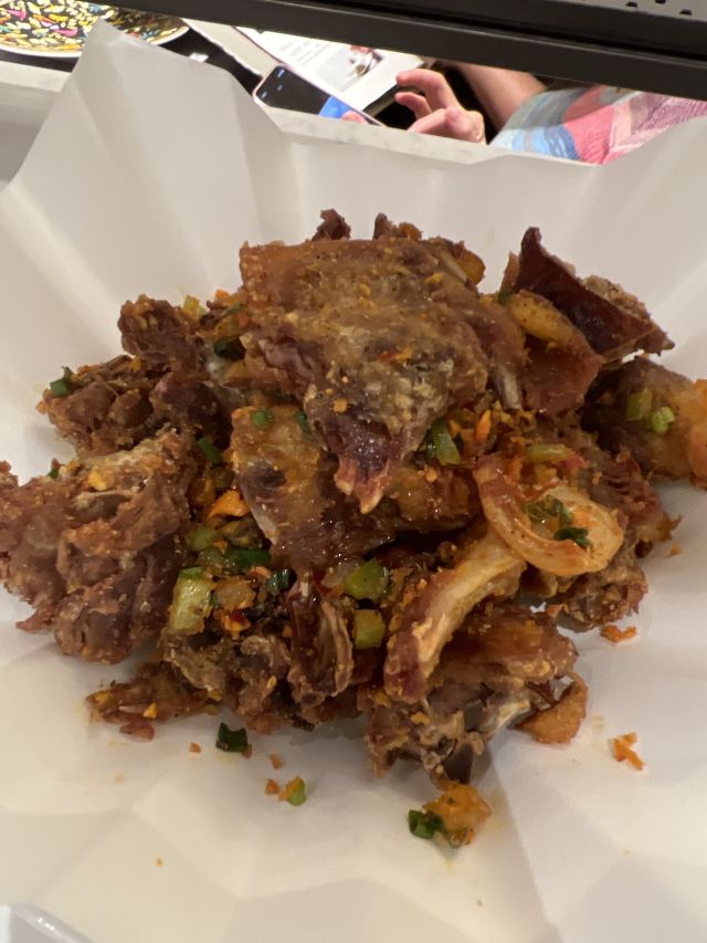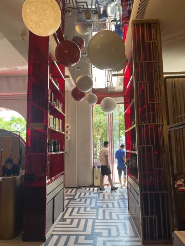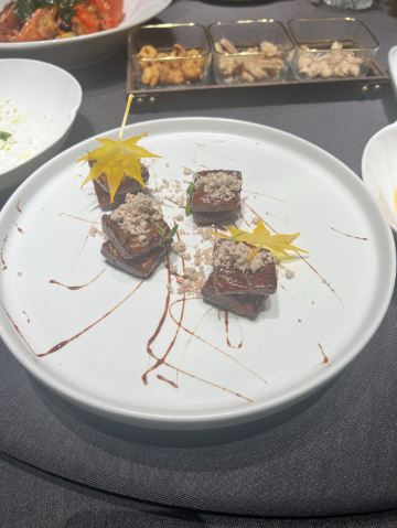 三亚的北京味道,三亚烤鸭第一。 【口味】 北京来的烤鸭师傅,传承的是挂炉,用3-5 年海南荔枝果木,选用北京金星烤鸭,挂炉60-70分钟,3 次挂皮上色。鸭种十一个月以上,2000克左右。皮脆肉多汁,鱼子酱烤鸭和包饼两种,最喜欢的是开心果蒜泥酱,这个应该是全国首创。 松间夏果 ,土豆泥蟹肉松仁,春卷皮薄脆, 醉小青龙。选用1斤2两海南小青龙,传统潮汕,海南小米椒,小青椒,海南小金桔。 马兰盏丝瓜、用的海南咸鱼干,泰国的马兰盏酱,调制。非常肥美多汁。 招牌菜肥肠煲,海南黑毛猪的肥肠中断,处理2-3 次,很干净。关键是特色香料包,里面有八角香叶桂皮,大料京葱,慢焗40!分钟,新疆天山辣椒油,本地小葱花。 【环境】装修设计很艳丽,有一种冲撞的中国美。 【服务】恰到好处,游刃有余,张弛有度,很舒服的气质服务。
