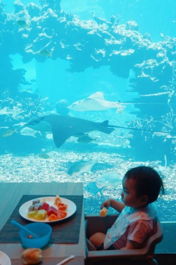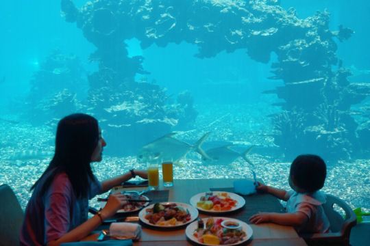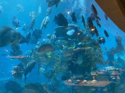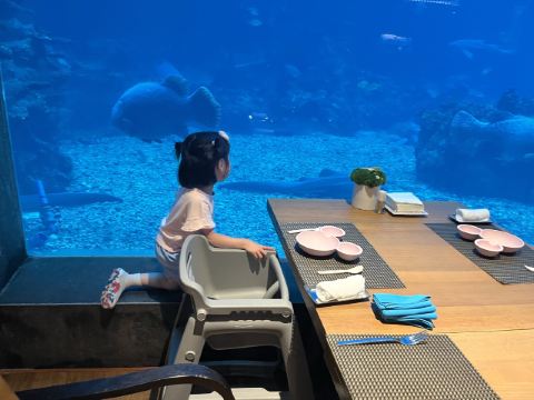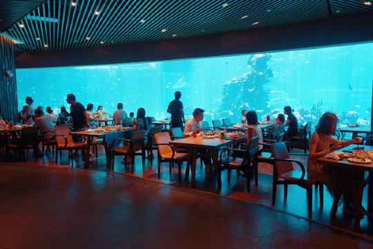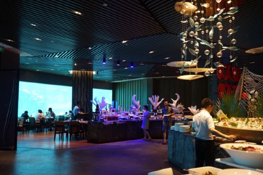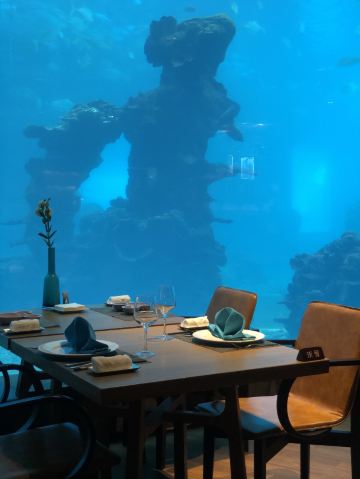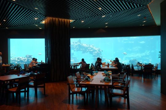 餐厅是国内很有特色的海洋餐厅,用餐时可以看到成群的鱼儿在头顶游过,还有水中美人鱼表演活跃用餐氛围。除了餐厅环境外,食物的口味也毫不含糊,新鲜的食材加上高水平大厨的烹饪,口味令人惊喜不已。