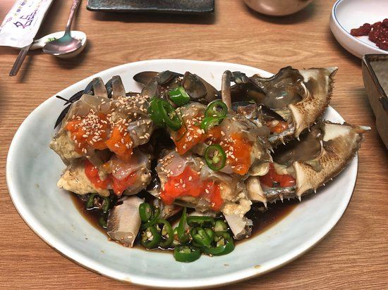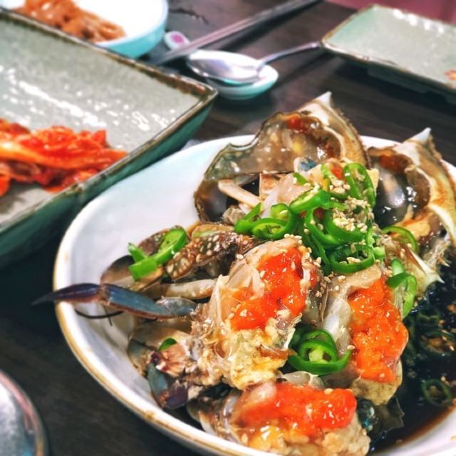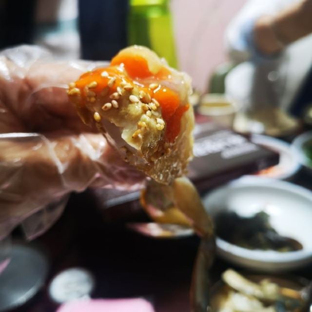 真味食堂是一家经营酱蟹的专门店,首推菜单即是从西海捕捞的梭子蟹再腌制而成的酱蟹。该店会在螃蟹多肉、蟹黄饱满的四月一次买下一年的螃蟹存放在忠南瑞山的专用冷冻库冷藏,因此在这里一整年都能吃到蟹肉饱满的螃蟹制成的酱蟹。