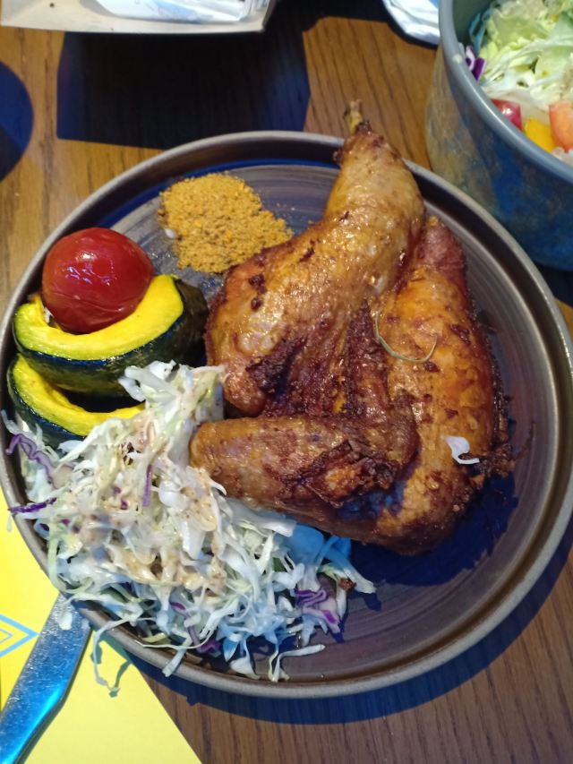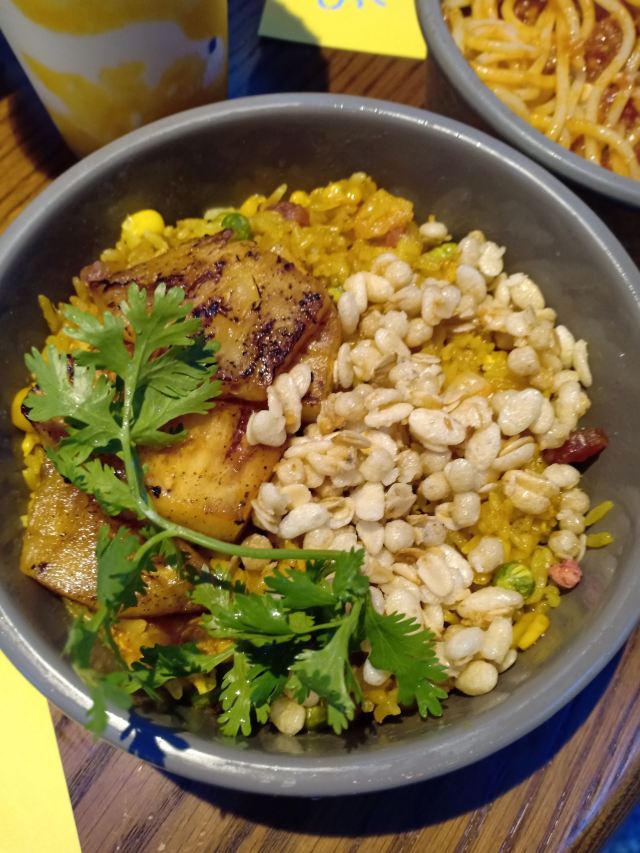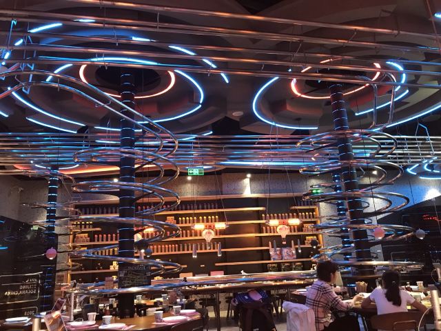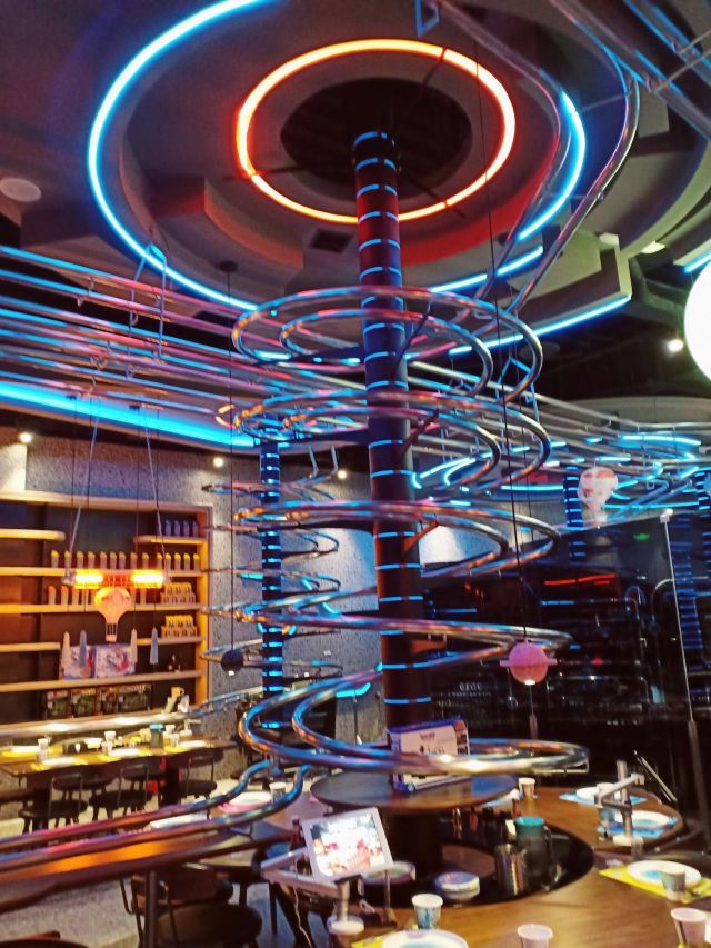 在携程美食上找到的特价券。餐厅环境不错,味道也不错,那半只烤鸡非常好吃,很香很香,海鲜菠萝饭和意面也不错。餐厅很有特色,通过在轨道上滑行的小汽车传菜,还有机器人送餐。带娃去餐厅的特别多,小朋友都非常喜欢。不过虽然有自动化服务,人工服务仍然建议加强,因为机器是没有感情的,也无法达到完全智能化。机器人和小汽车都是增加体验感,但最后上到餐桌上的那一步,我都是自力更生的,其间还有一次餐没等从汽车上拿下来,车就快速划行了。还有一次差点烫手。而这时候是应该有人工服务配合的。但是我没有看到人工服务。