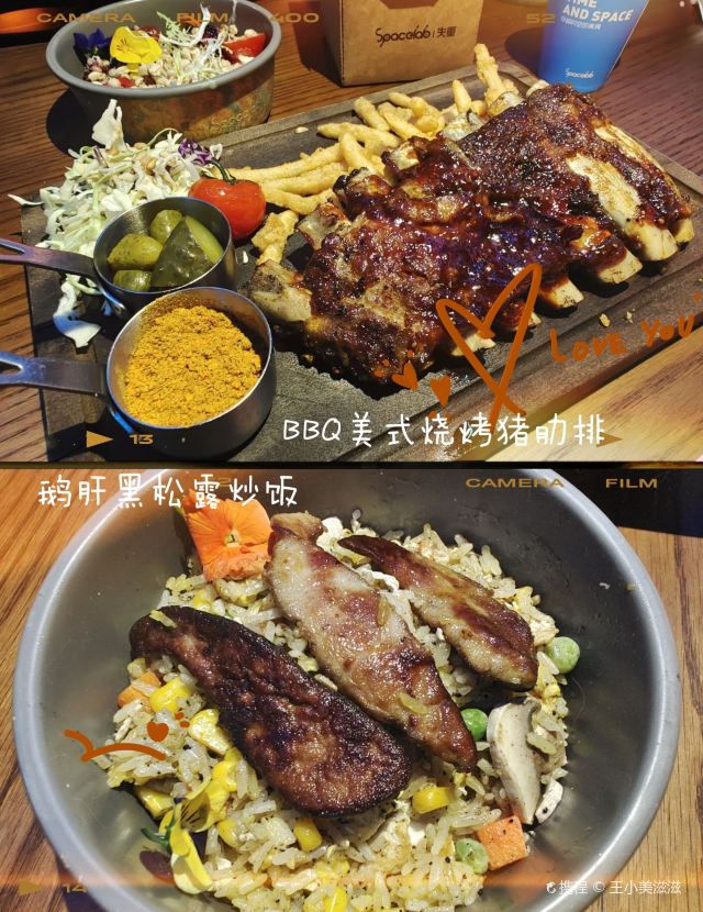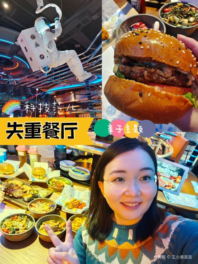 王小美滋滋🌸五一小长假马上就要来了,大家都准备去哪玩吖?这个周末,小美带着家人吃饭、看电影,和家人朋友一起聚餐也很开心。😍终于带着父母来这里吃了顿大餐! 🚀合生汇五层的失重餐厅是最近新开的吧?这家店面积不小,不仅有ipad自助点餐,机器人送餐,还有可循环的送餐轨道。取餐之后按一下按钮,小车车就直接开回厨房了,设计非常巧妙! 👶🏻作为一个小顽童,我觉得每家spacelab都像个星际游乐园,非常好玩!小朋友们应该会很喜欢,现场也看到很多宝妈带着孩子来吃。餐厅还有专门给宝宝准备的儿童餐,会员福利及儿童玩具。 😋这次我是带着父母来吃饭,带他们感受一下这种有趣的就餐体验,这是家人也认可的几道小美推荐菜: 🏅BBQ美式烧烤猪肋排 家人很喜欢这道烤猪肋排,猪肋排烤得非常软烂,搭配酸甜口酱汁很入味。我刚拍完照片,猪肋排就被瓜分得差不多了……😂 🏅失重烧烤大汉堡 & 鹅肝黑松露酱大汉堡 它家大汉堡味道都不错,馅料很足口感饱满,配料居然还有鹅肝和黑松露酱,大块的厚牛肉很有嚼头,一口咬下去,让我想起了澳洲汉堡的味道! 🏅藜麦酸奶蓝莓沙拉 招牌经典沙拉,混合了水果、蔬菜、各种果料还有酸奶,味道清爽又解腻。 ⭐️鹅肝黑松露炒饭 服务员小姐姐推荐的鹅肝炒饭,味道惊呆了!想起了以前看过的一个纪录片,对蛋炒饭的讲解。炒饭的饭粒,还有大片的鹅肝,真的非常好吃! ⭐️肉酱意大利面 & 墨鱼脏脏面 番茄酱,味道微甜,肉酱炒的也很浓郁。相比之下,我更喜欢比较有新鲜感的脏脏面。西班牙风味墨汁,还有墨鱼、松子做配料。吃完面别忘记照照镜子,龇牙咧嘴的~大黑牙,来一张自拍! 🥑失重能量饮 牛油果、香蕉这些水果鲜榨,百喝不厌。 这次基本把店里的招牌菜基本都点上了,汉堡,沙拉,意面,炒饭,小吃。服务员小姐姐都夸我会点菜!小美很喜欢的餐厅,很有科技感,非常好玩,大朋友和小朋友来这里,都会有一个美好回忆。 SPACELAB失重餐厅(合生汇店) 🍽餐厅:失重餐厅(北京合生汇店) 📍地址:北京市朝阳区西大望路21号合生汇5层16A 💰人均:100~200元