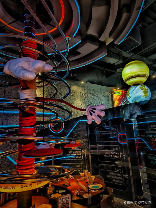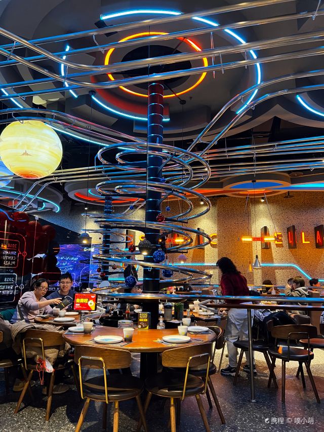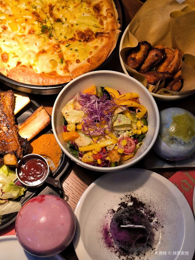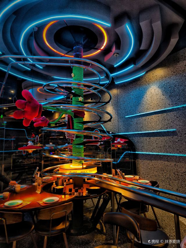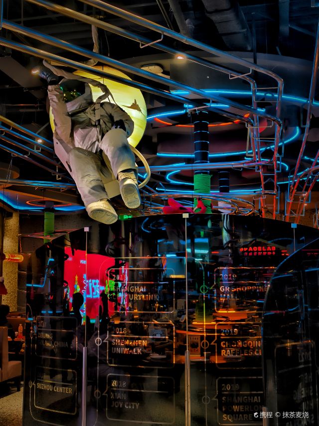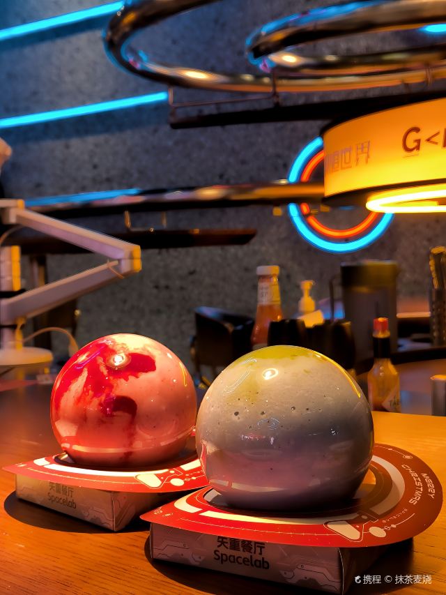 抹茶麦烧在失重餐厅,好吃和好玩一样重要。 满载美食的小飞碟🛸从空中盘旋飞来停在面前,拿下盘子后按下返航键,飞碟就又飞走了。 🈵足了我对未来餐厅的所有幻想。我年轻的时候怎么没这玩意儿? 听说过他家只是好玩儿,菜品一般,但是吃完后我只想给说这话的人两个大比斗。 失重岩烤大骨牛肋排🍖,比我脑袋大,咸甜香软,肥嫩爆汁,符🈴我对肋排的全部要求。 榴莲芒果手工披萨🍕,很想安利给意大利人的一款,我抗揍。🈳气感巨强,榴莲和芒果仿佛能融化在口中。吃过很多次榴莲披萨,这款妥妥的前三甲,其他两名我还给忘了。 甜香鸡翅配薯角🍟,对甜口鸡翅向来没有抵抗力,到现在我还没流感但是对这款真的抗拒不了。 草莓星球🍓,能把慕斯蛋糕做成这么精致我就想问问这个模具是从哪里进的?不甜不腻,解冻🉐恰到好处。 火星救援和流浪地球,分别为草莓和牛油果香蕉奶昔,上桌惊艳四座,仿佛浩渺宇宙中的唯美星球。一炷香的功夫我就干掉了两个星球,哥斯拉都没我能打。 非常适🈴来遛娃和遛自己的一家,还🈶别的星球么我收个太阳系。 #遛娃好去处 #美食旬味会 #浪漫约会餐厅