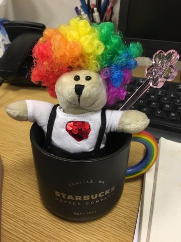 这个是星巴克白色情人节出的。闺蜜因为喜欢熊,而我喜欢杯子刚好凑一个! 彩虹爆炸头🌈💥超级可爱,还有挂钩。 🐻衣服裤子都是可以脱的。拿到手当然是脱一波拉。 还买了个金边的樱花杯,搭配樱花的搅拌棒!心碎的是拿到家,玻璃棒就碎了!!!!! 超级难过[失望]好失落😵 有什么可以拯救TA么?在线等!!!!!!想问可以换么?[流泪][流泪][流泪][流泪][流泪][流泪][流泪]
