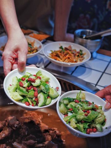酸菜,东北鱼头大炖锅,金针菇,皮蛋土豆腐,小笨鸡,鸡肉炖锅,血肠,花卷,東北野山楂汁,凉拌黑木耳,东北蒜茄子,骨头锅,玉米饼,铁锅炖大鹅,东北大拉皮,姚稷大拌菜,蘸酱菜,哈红肠,贴饼,鵝肉鍋,大鹅炖酸菜,姚稷招财锅