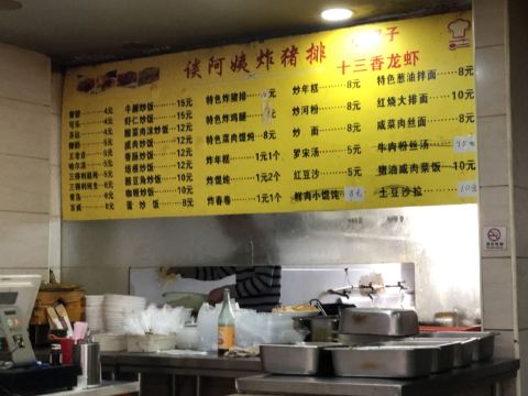 炸鸡腿,生煎,红烧鸡腿,春卷馄饨,椒盐鸡柳,爆炒小公鸡,葱姜花蛤,盐水小龙虾,香辣螺丝,蒜泥龙虾,十三香龙虾,炸猪排,炸春卷,罗宋汤,拌面,炸馄饨,炸年糕,炒河粉,炒面,绿豆汤,红豆沙