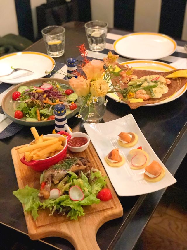 La Crêperi以出色的布列塔尼美食闻名于上海,其具有海岸风情的氛围,让用餐成为特别舒适温暖的体验。布列塔尼是个法国西北部的半岛,拥有丰富多样的海鲜,有着老饕的“海鲜天堂”之称。La Crêperie的菜品以法式咸甜两大薄饼系列为灵魂,另有风味独特的海鲜拼盘、青口贝、鹅肝、苹果酒等。