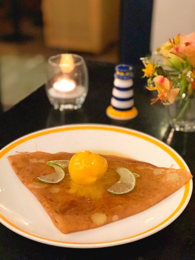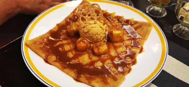 烟熏三文菠菜蛋,火焰可丽饼,带子培根蘑菇奶油,火腿鸡蛋芝士薄饼,海鲜意面,椰子冰淇淋焦糖,可丽饼套餐,柠檬汁,烟熏三文鱼菠菜,水果沙拉,龙虾汤,热苹果酒,火焰冰淇淋,焦糖猪肉卷饼,薄饼,焦糖苹果crepe,火腿土豆可丽饼,布列塔尼空运生蚝,奶油鸡肉蘑菇荞麦饼,焦糖蛋奶布丁,蓝莓自制酸奶,火焰酒燃烧的可丽饼,法国昂司谷起泡苹果酒,焦糖煎香蕉crepe,62号焦糖可丽饼,传统法式鱼汤,法式鹅肝酱,火焰冰激凌