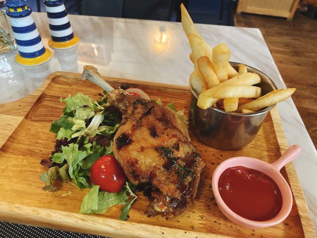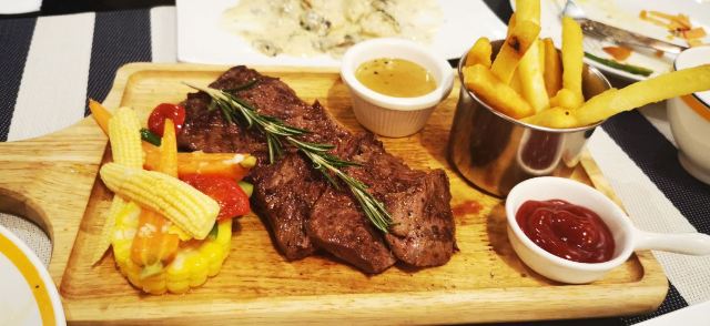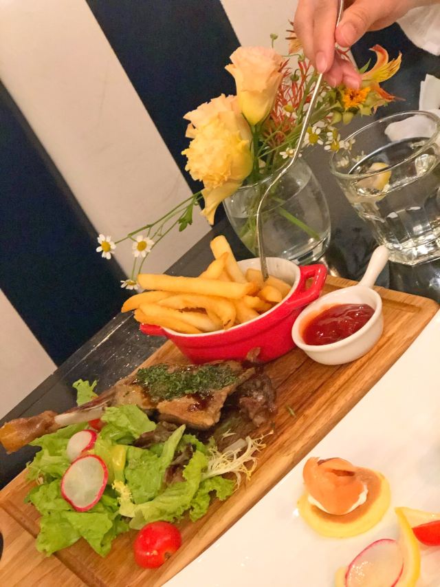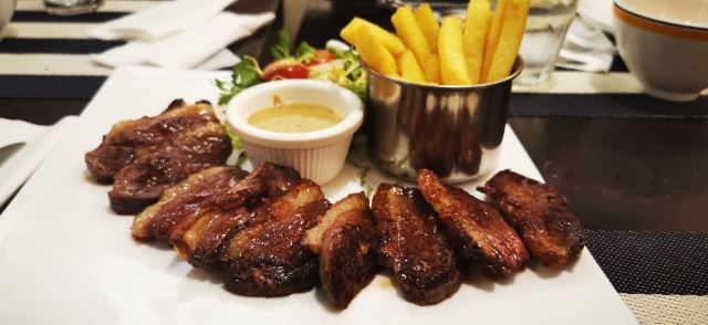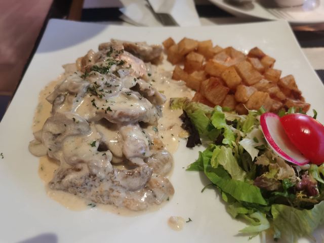 La Creperie(Jing An)上海市中心黄金地段的一家La Creperie法式西餐厅,这家店的晚间套餐强烈推荐,分为400多元和600多元两类。套餐的优惠力度还是不小的。招牌的菲力牛排(配炸薯条🍟)可以选择几分熟的,推荐做得七分熟的。还有法式鸡排配蘑菇,鸡肉口感鲜嫩诱人,味道十分美味。法式古丹科勒苹果汁味道纯正甜蜜。还有这家店的各色甜品冰淇淋什么的,种类繁多,推荐焦糖蛋奶布丁等,口感也是比较美味精致了。