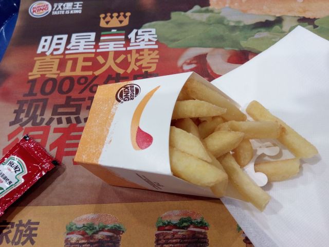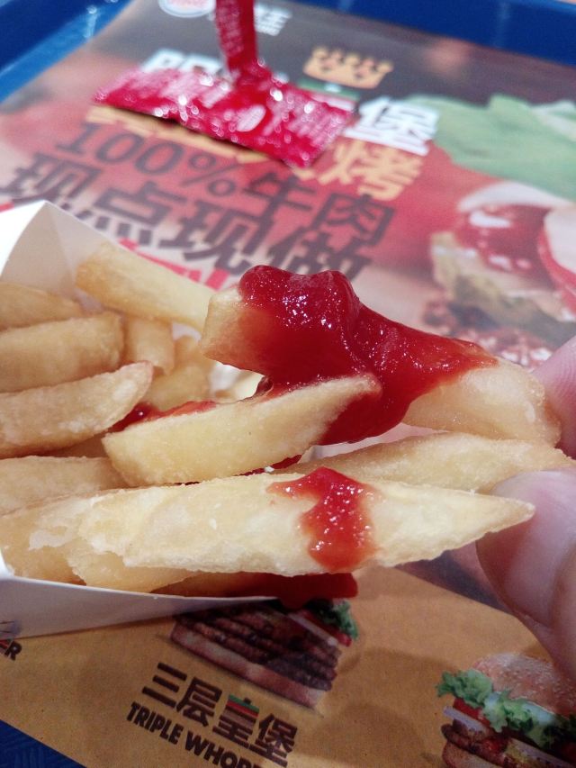 这家“汉堡王”在“龙湖天街”的负一层,位置挺好的,很方便,逛完街就下来坐坐,歇一歇,兑换了之前团购的“薯条”,店员小哥哥都挺奈斯的,态度有礼,薯条蘸上番茄酱,味道好吃,超划算的,一直觉得“汉堡王”的性价比是洋快餐中最高的~