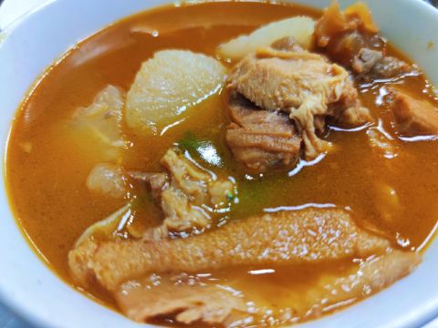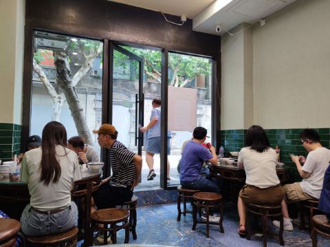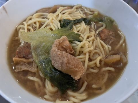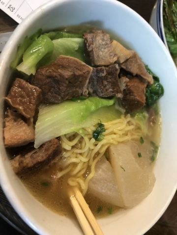 新晋某榜必吃餐厅 很容易错过的一家小店 四张圆桌一间后厨基本是它的全部 拼桌是必须的 因为独自来吃 边吃边听别人的故事也不会无聊 一人套餐里的生菜就是面里都会放两片的那种 感觉干了10份面的菜量 然后自己那份牛肉面里又捞出来三片 牛杂用料很实 汤底是不是放了沙茶酱? 服务可以 店员会主动推送优惠 另外每桌都放上了大包100抽的湿巾 从没见过这样宠客人的 虽是小小的餐厅 无奈人气太旺 空调开足温度也下不来 给各位正准备去的提个醒