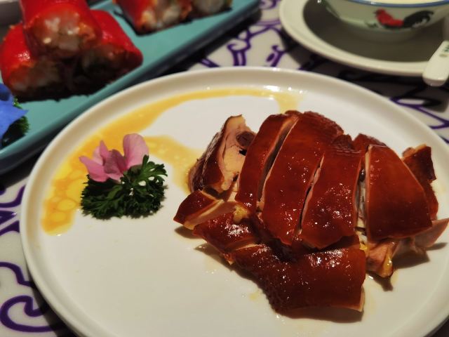 嗨吃使我快乐之 |宝粤楼广式点心茶楼(百联中环店)^ 周一的晚上真的是打卡拔草餐厅的好时候 平日里拿牌取号等到天荒地老的地方 周一竟然都有机会 walk in了 今天就来打卡这家地道广粤小点茶楼 来茶楼 首先当然是喝茶 一壶靓汤 色清气香 点完了茶水 这才算刚开始 点心小吃才是这里的特色|乳鸽^皮脆肉嫩且多汁|金莎鲜虾红米肠^色泽鲜艳口感好|鲜虾韭菜饼^外皮薄脆 韭菜清香 确实都是不错的小点 值得尝试