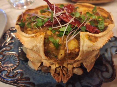 静安区的核心地带,店堂有一点南亚风情,挺热闹的,但感觉太吵了说话有点吃力。菜品口味比较正宗,因为去过印度,感觉隐隐有点印度的“味道”了。羊肉汉堡虽然不大,但里面配料丰富,蟹肉咖喱香辣刺激,不论搭配藏红花米饭还是馕都很合适。