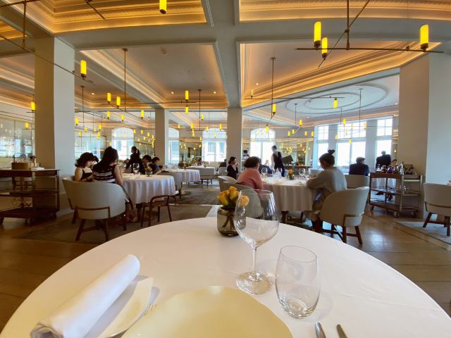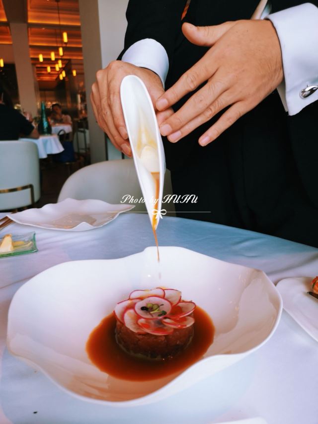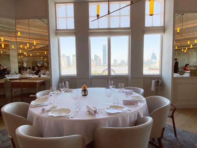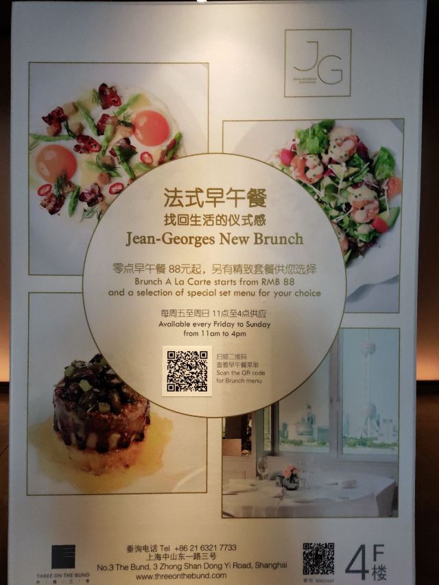 吃遍上海Jean-Georges ⛵️世界知名的传奇大厨Jean-Georges Vongerichten访问上海,接受电视台采访播出以后就对这间纽约之外首间以大厨名字命名的米其林法餐厅种下草了。外滩三号的顶级地段+名厨打理的法式西餐+优雅浪漫的法式用餐环境+贴心用心的服务,米其林餐厅给人非同一般的用餐体验[色] 环境 白色的简约风格搭配暖色调灯光更显法式浪漫,提前预约的靠窗位黄浦江景一览无余,蓝天白云伴随美好午餐的开始☕️ 服务 服务员彬彬有礼,领位落座会主动为女士拉椅子,很懂西方礼仪哦。餐前面包的碎絮都会来轻轻清理干净然后进入下一道餐品。席间上菜都是带着白手套,主动介绍餐品名字和食材,确实10[%]服务费物有所值[强][强] 菜品 餐前面包 有三款形状不一,核桃面包用料很足,吃口香香的,就是长得有点难看,味道不错[调皮]   三文鱼塔塔 三文鱼切成小颗粒调味,下层是牛油果泥,上层的小白萝卜做成花瓣摆得特别漂亮可爱, 吃的时候服务员会帮忙淋上酱汁,日料刺身蘸芥末酱油的吃法习惯后换成法餐的吃法倒也新鲜美味   芦笋蟹肉烩饭 比较健康的一道主食,蟹肉拆分成一丝丝,味道鲜甜,清爽不油腻,很适合夏天。   热情裹和巧克力蛋奶酥 这道甜品名字好复杂,其实就是当下流行的舒芙蕾啦,柔软蓬松的舒芙蕾边上还配了一个小冰淇淋,可以浇上香草蛋黄酱来增加风味,冰淇淋有点柠檬香味,可以解腻。 适合场景 米其林餐厅的品质,环境优雅,适合情侣约会,求婚,纪念日等。商务宴请也是很有面子,偶尔闺蜜或者朋友聚会,来外滩享受一下也是不错[愉快] 总结 ⛵️这间餐厅零点比较贵,人均1000元左右。这样午市298元三道的套餐看上去性价比就比较高了。当然一样要另收10[%]的服务费。 靠窗座位可以在用餐时欣赏黄浦江景和陆家嘴,位子不多,建议提早预订。♦️   Jean Georges 中山东一路3号外滩三号4楼 交通:地铁二号线南京东路站 停车:可代客泊车 营业时间 工作日午市为11:30~14:30 周末午市为 11:30~15:00 晚上为18:00~22:30