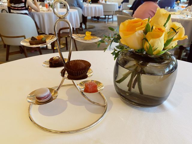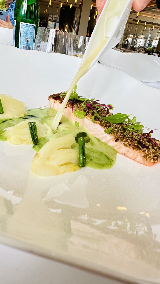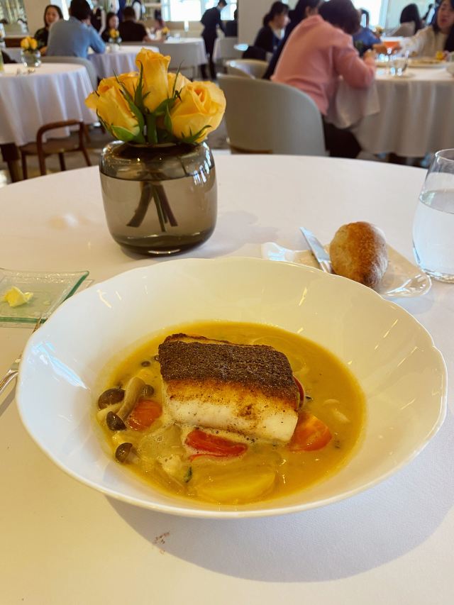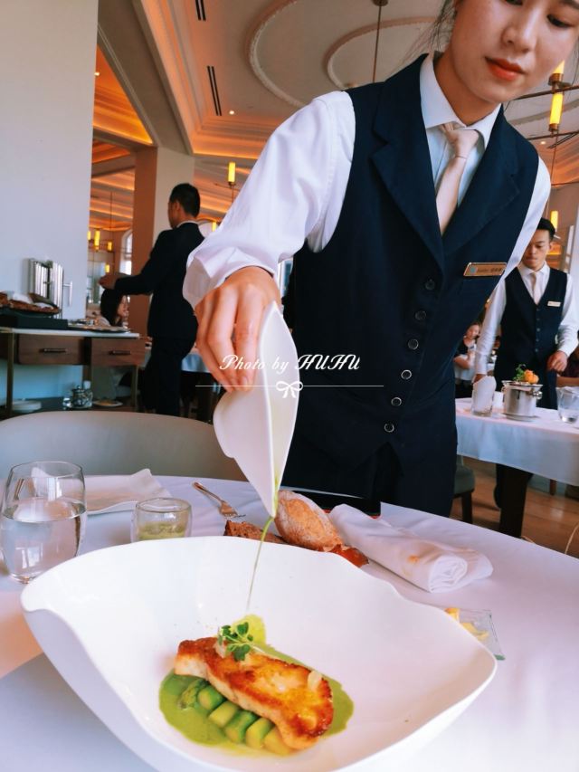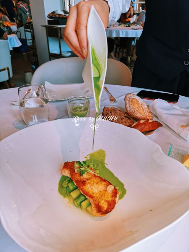 saisyou1餐厅周打卡NO.18 本以为餐厅周结束了,结果又来了个赢家版[捂脸][捂脸] 让我的减肥大计遭受干扰! 这次没定几家,想想JG就先过来拔草吧[笑哭][笑哭] 在外滩3号的四楼,没想到是一家占地非常大的餐厅! 相当人气,中午几乎满席! 景观最美C位二人座,据说很早被预定到了,吃到一半看到两位男士来了…… 餐前面包的核桃面包好吃,料很足,小法棍也不错,外皮没想象中硬! 额外送了餐前小食🌹 第一道选了金枪鱼塔塔,这道我还是喜欢的。 如果没有那个汤更完美,汤酸酸的,我最不擅长吃酸的[捂脸][捂脸] 第二道,选了侍者推荐的甜青豆汤。这个很一般,除了几颗青豆还挺嫩的,感觉还没有些店的菌菇汤好喝! 第三道是真鲷配甜酸汁,点菜的时候只看见真鲷两字,没看见酸甜汁[捂脸] 好在汤汁不算很酸,略有奶油味!鱼倒是很大一块,吃完就已经撑了[笑哭][笑哭] 最后的甜品选了大多数人都好评的巧克力熔岩蛋糕! 上来时巧克力还是热的,里面流着软软的巧克力酱,配上香草冰淇淋,中和了甜度和热度,真的蛮可口的! 那么多巧克力酱,感觉吃的是满满的卡路里啊[笑哭][笑哭] 最后意外惊喜是,侍者又拿来了一份精美的小甜点,说是甜品后的小甜点[捂脸] 小甜点有六种,据说都是手工制成,非常精致! 本着浪费食物是可耻的,把她们大多消灭了[捂脸][捂脸] 巧克力蛋糕和小甜点真是让我甜到牙疼,甜到心里! 今天中午几乎满座,但是服务特别好! 餐巾不小心掉地上会及时更换,也会询问菜品的口味如何! 改不改是另外一回事,至少让人觉得得到重视、尊重! 即使口味并不是特别满意,我也愿意带朋友再来体验! 现在感觉手心冒汗,是不是巧克力吃多了,感觉今天不跑10公里,都维持不了现在的体重[捂脸][捂脸] 物超所值的一顿,今天很满足🌹