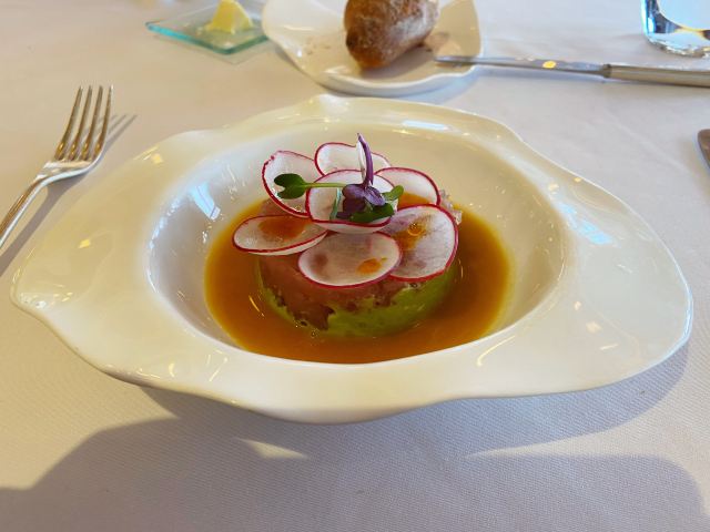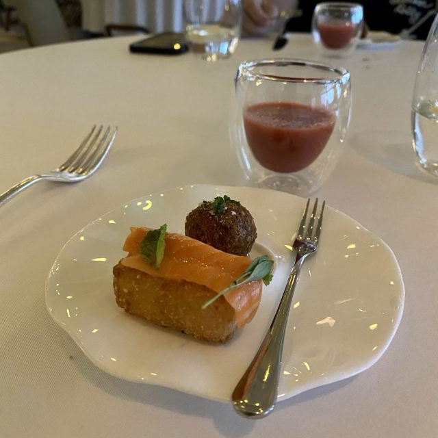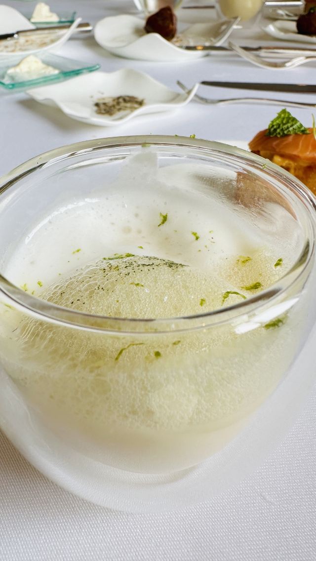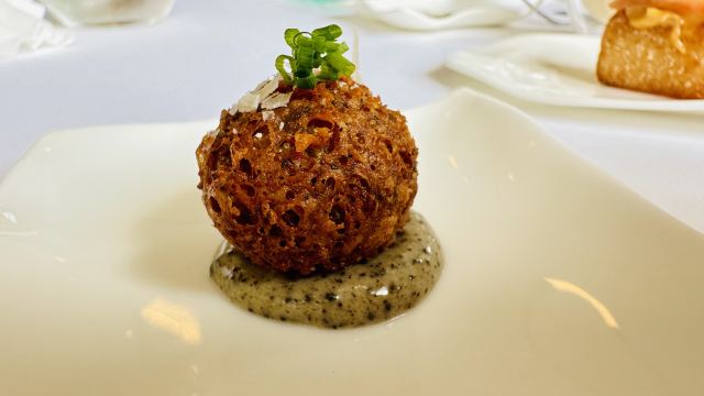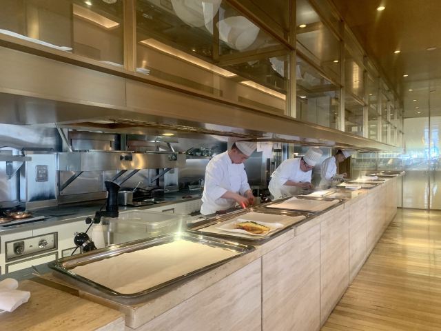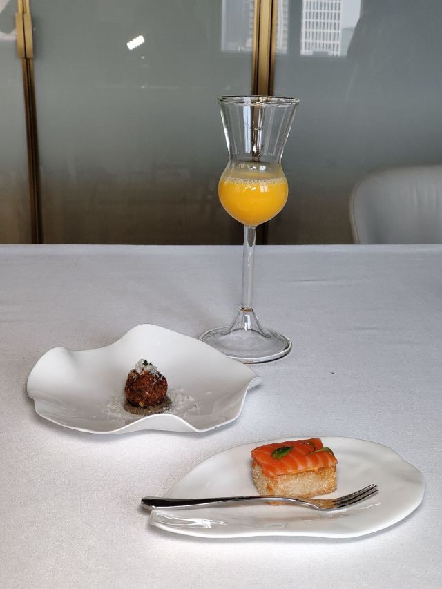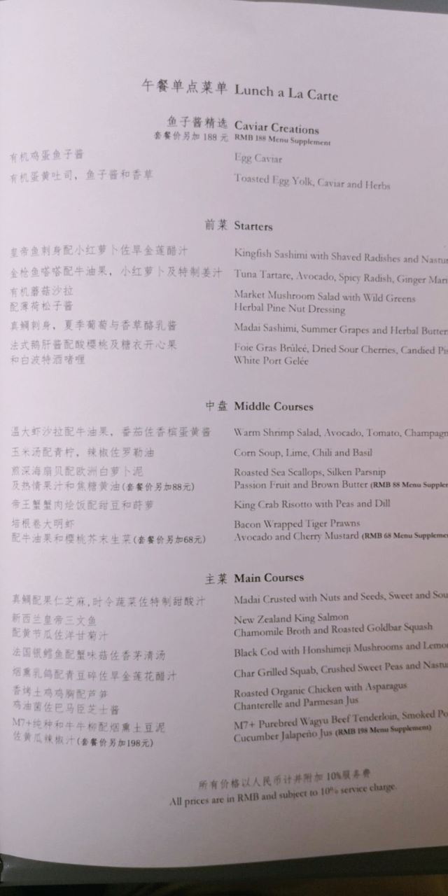 炙烤和牛牛柳,黑松露三文鱼,鸡蛋鱼子酱,炙烤冰岛比目鱼,龙虾松露Benedict,巧克力熔岩蛋糕,鹅肝,绿芦笋配羊肚菌、芦笋汁,黑麦葡萄核桃面包,南极银鳕鱼,红鲷鱼,甜青豆浓汤,皇帝鱼刺身,法式芝士蛋糕,鹅肝配酸樱桃,黑松露芝士球,三文鱼脆米寿司