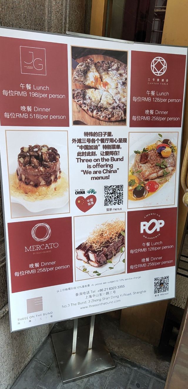 Jean Georges疫情期间,@上海外滩三号 JEAN GEORGES作为米其林一星的餐厅,推出加油中国的套餐,午餐198元/人,晚餐518元/人,这个价格不去实在对不起自己啊! 餐前面包里有法棍,德式碱水面包和核桃葡萄黑麦面包。可以免费加哦,还赠送三种小食。 甜青豆汤巴马臣芝士香脆面包丁充满大自然气息。 绿芦笋野生羊肚菌酒香荷兰酱正式春天不可多得的美味。 香煎鹅肝是招牌,今年搭配的草莓酱和马科纳杏仁,山樱桃等,酸甜有加。 炙烤乳鸽青豆碎金莲花醋汁:几十种香料腌制而成的乳鸽香嫩多汁,而用草本香料为底做酱汁是Jean-Georges的特色,本季选用清热解毒的金莲花,口感清甜。 莓果云:棉花糖,满满的奶油,荔枝树莓冰淇淋,烤杏仁薄饼,太满足了。 巧克力中有四个不同口味的冰淇淋球,分别是焦糖花生冰激凌、蜂蜜冰激凌、蓝色的碟豆花冰激凌和三层黑巧克力冰淇淋,垫底的热情果十分解腻。
